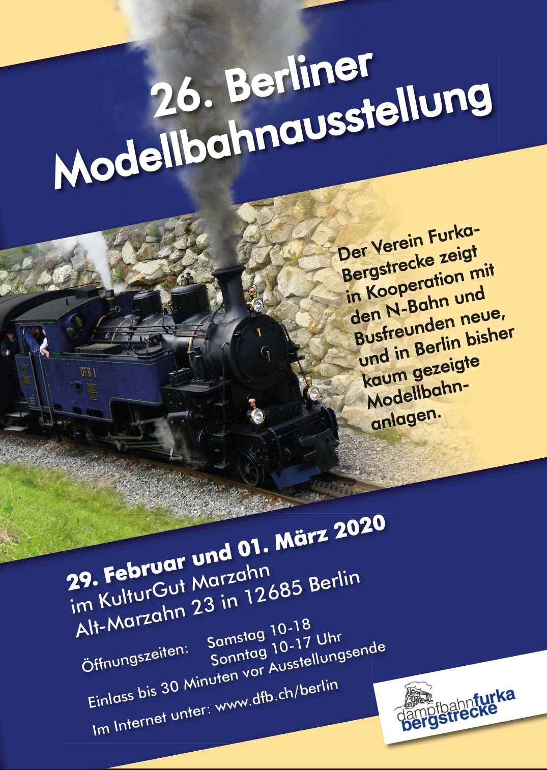 Ein Klick auf die Fotos öffnet sie in einem neuen Tab in voller Auflösung - Pressemitteilung zur 26. Berliner Modellbahnausstellung (PDF) - Pressemitteilung zur 26. Berliner Modellbahnausstellung (.odt)Verkehrsverbindungen: Tram M6, 16, M8 und 18 - Bus 154, 192 und 195
