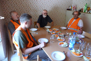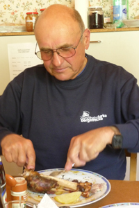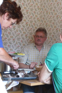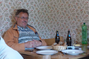 Klaus war dann zufrieden, Magen voll, Bier zur Hand |