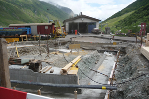 Und in Realp halfen zwei beim Betonieren der neuen Remise. Das sieht heute schon ganz anders aus. Schon wider haben wir was gebaut, was man nicht sieht. Ist halt so. |