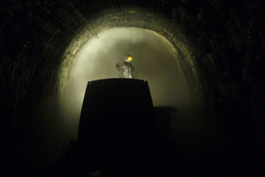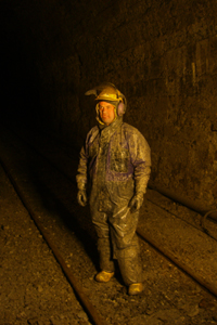 Die Sache mit dem Tunnel: Hilfe beim Wasserstrahlen, das ging mit 2500 bar. Der Marsmensch da ist einer der Spezialisten. |
