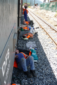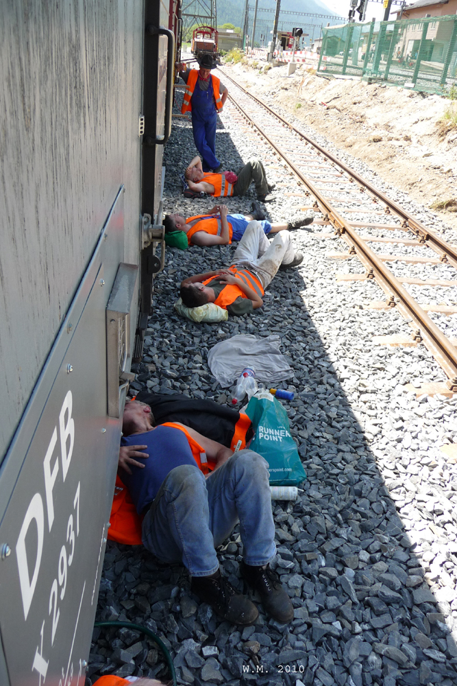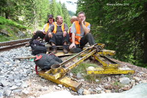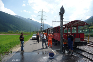 | Der Weg zu den Baustellen war beschwerlich und führte durch den Dschungel von Realp zum Auto-Zug, wo dann wieder Zivilisation war |