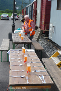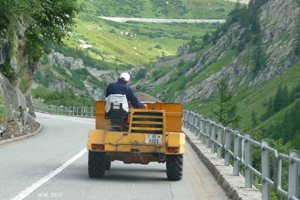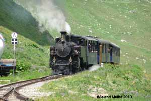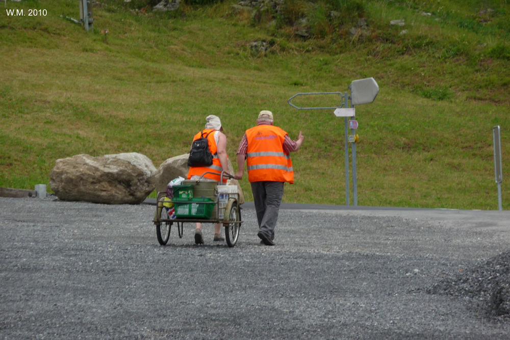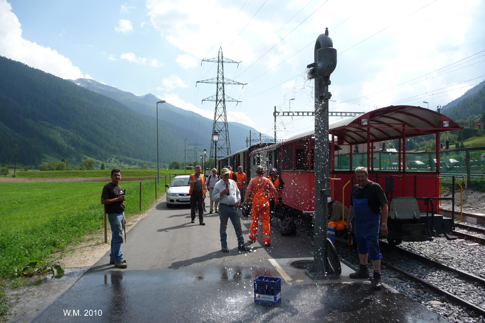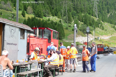 Das Essen kam auch aus Realp mit dem Tunnelzug, und hier zuckeln Mutter Fourage und ihr Helferlein wieder davon |