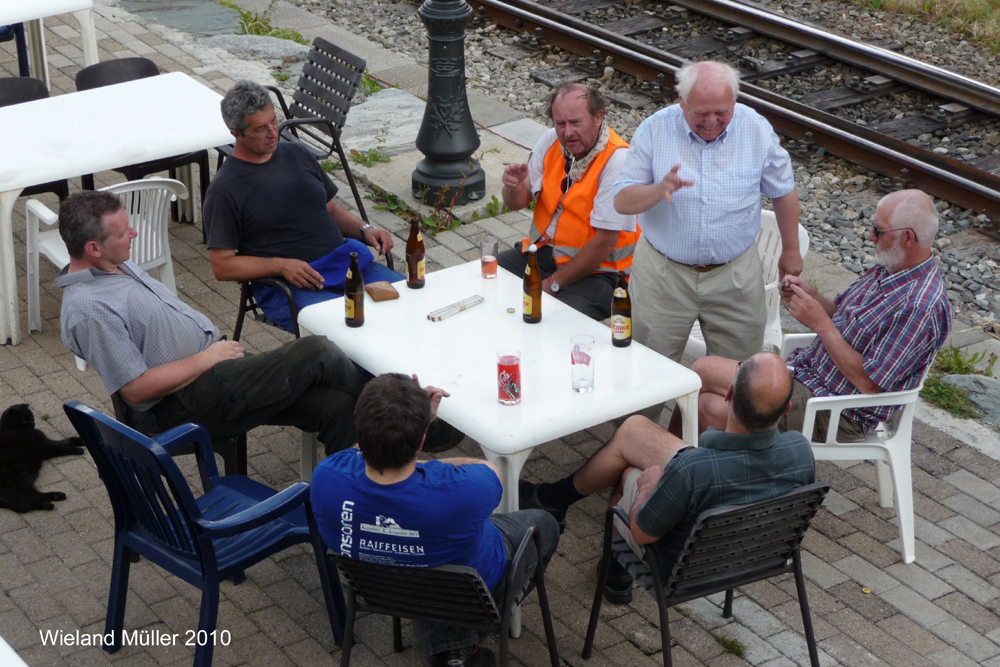 Nach Ankunft in Realp gabs Stuhl, Bier und Diskussion