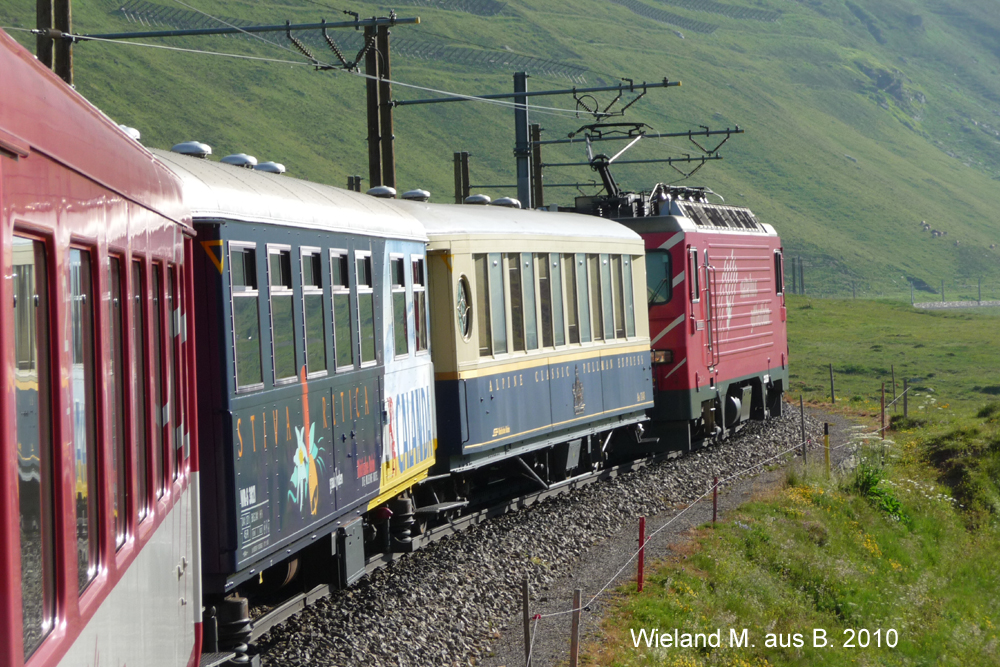 Zur Probefahrt und zur Belastung des neuen Gleises und war eine HGm 4/4 der MGB da. |