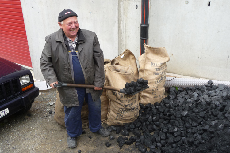 | Und Kohlen wurden auch vom Haufen in die Säcke befördert. Jemand muß das ja tun. |